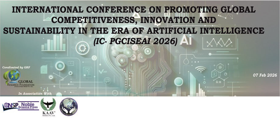 IC-PGCISEAI 2026 – the International Conference on Promoting Global Competitiveness, Innovation, and Sustainability in the Era of Artificial Intelligence, will be held on 7th February 2026. This premier international event brings together global experts, researchers, academicians, and industry leaders to explore the transformative role of AI in driving innovation, enhancing competitiveness, and fostering sustainable development. The conference offers a multidisciplinary platform for sharing cutting-edge research, case studies, and AI-driven solutions across sectors such as business, engineering, social sciences, healthcare, and technology. Key themes include AI in Business and Management, Engineering and Technology, Social Sciences and Education, Sustainability, Innovation and Entrepreneurship, Data Analytics, Ethics and Policy, Emerging AI Technologies, and AI for Global Competitiveness. Through keynote lectures, panel discussions, workshops, and collaborative sessions, participants will gain insights into responsible AI, policy frameworks, and strategies for sustainable innovation. IC-PGCISEAI 2026 is committed to fostering international collaboration, knowledge exchange, and the dissemination of research that empowers global communities to leverage AI for a smarter, sustainable future.